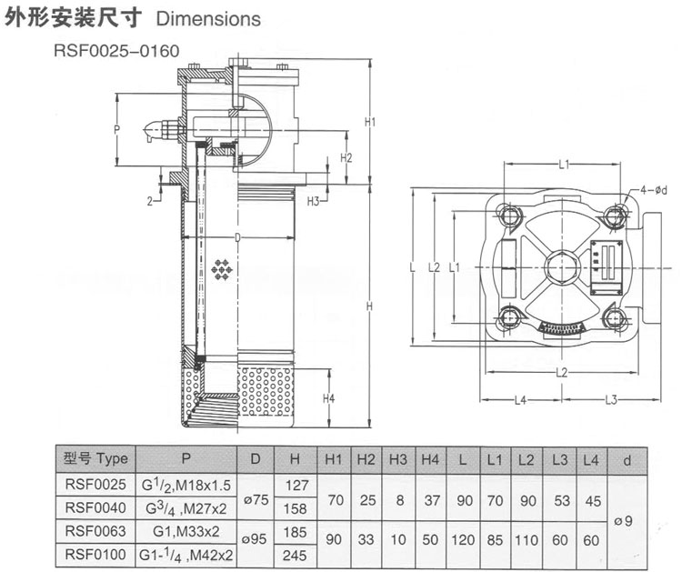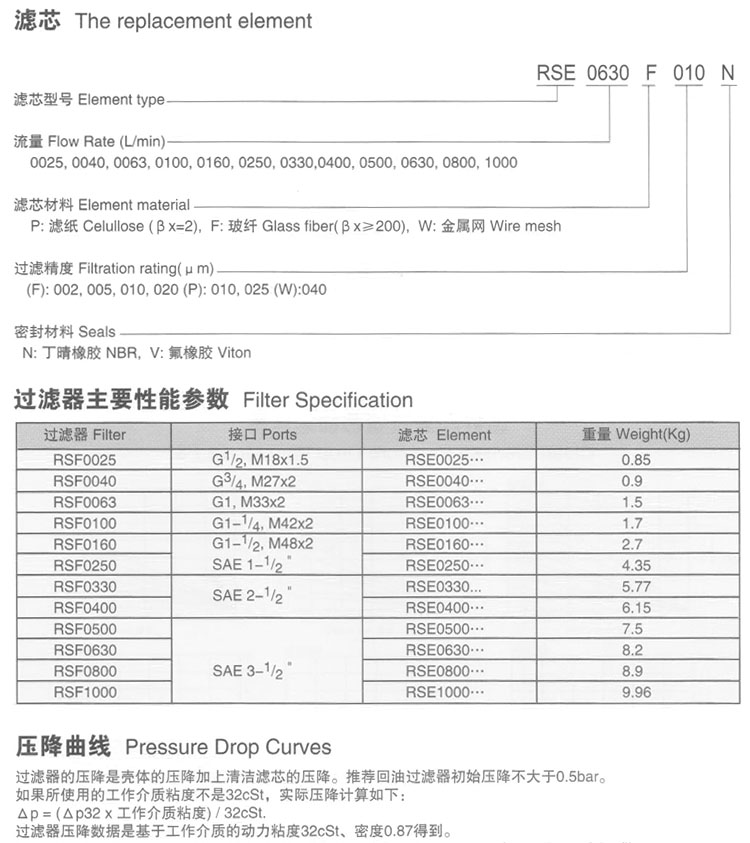 RSF0025,RSF0040,RSF0063,RSF0100,RSF0160,RSF0250,RSF0330,RSF0630,RSF0800,RSF1000,RSF1200,回油過濾器