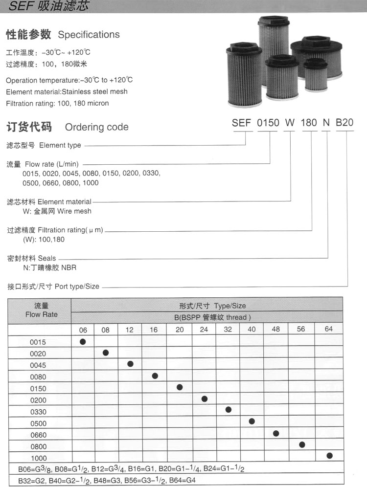 SEF0015,SEF0020,SEF0045,SEF0080,SEF0150,SEF0200,SEF0330,SEF0500,SEF0660,SEF0800,SEF1000,吸油濾芯