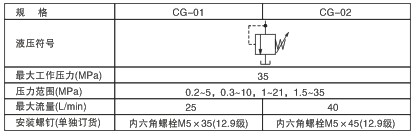 CG系列直動式溢流閥,既可以用于連接到遠(yuǎn)程控制的壓力閥的控制油口,進(jìn)行遠(yuǎn)程控制,或幾只閥并聯(lián)對遠(yuǎn)程控制的壓力閥進(jìn)行多級壓力控制;也可以用于小流量控制回路的最高壓力調(diào)節(jié),或作為安全閥使用。