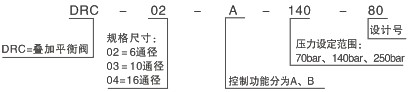 DRC系列疊加平衡閥的控制形式見功能符號說明。
