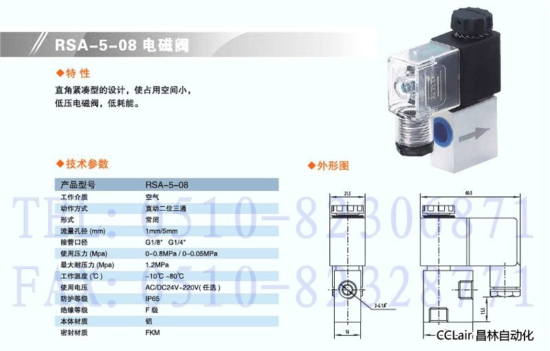 產(chǎn)品: 瀏覽次數(shù):502RSA-5-08,直動二位三通電磁閥