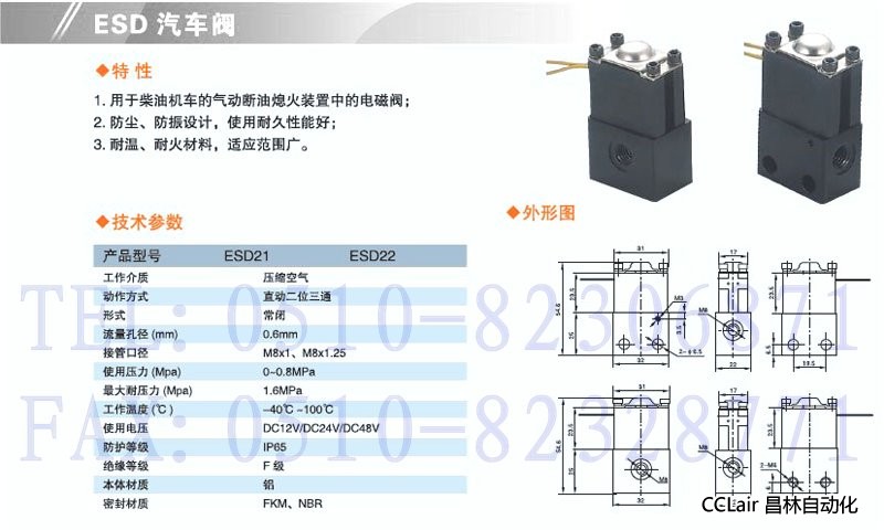 詳細(xì)信息 ESD21,ESD22,直動(dòng)二位三通汽車閥