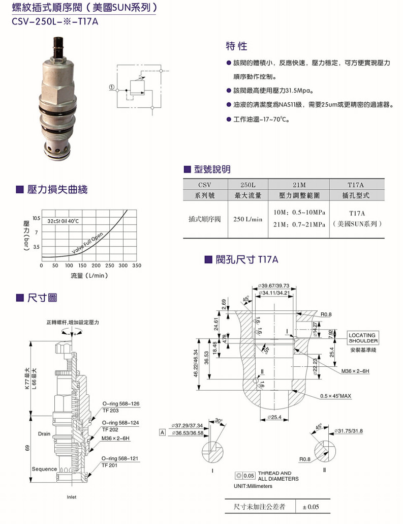 CSV-250L-10M-T17A,CSV-250L-21M-T17A,螺紋插式順序閥