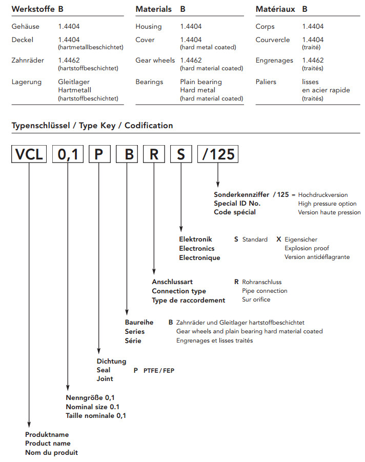 VCL0.1PBRS/125, kracht齒輪流量計(jì)