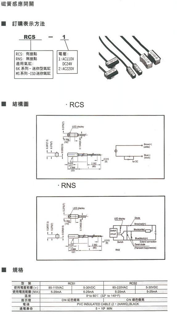 詳細(xì)信息 RCS-1,RCS-2,RNS-1,RNS-2,磁簧感應(yīng)開關(guān)