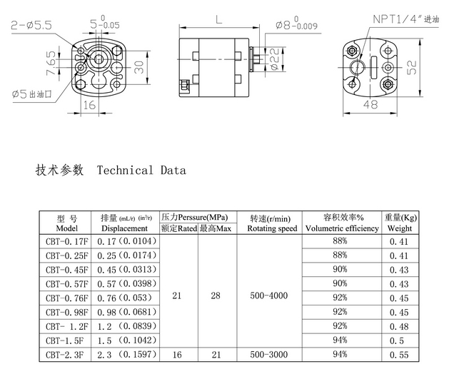 詳細(xì)信息 CBT-0.17F,CBT-0.25F,CBT-0.45F,CBT-0.57F,CBT-0.76F,CBT-0.98F,CBT-1.2F,CBT-1.5F,CBT-2.3F,齒輪泵