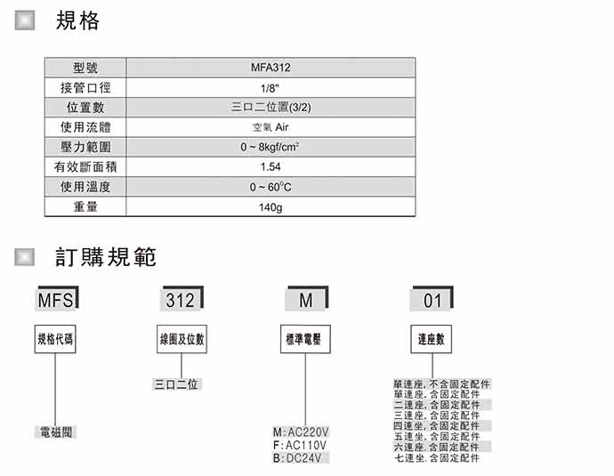 電磁閥MFS312M,MFS312F,MFS312B