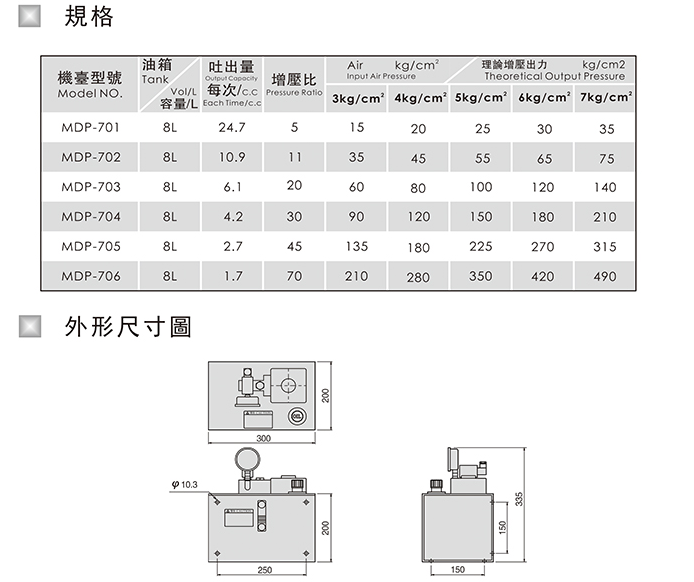 氣動(dòng)式油壓泵MDP-701,MDP-702,MDP-703,MDP-704,MDP-705,MDP-706