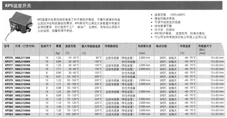 詳細信息 KPS76,KPS77,KPS79,KPS81,KPS80,KPS83,溫度開關