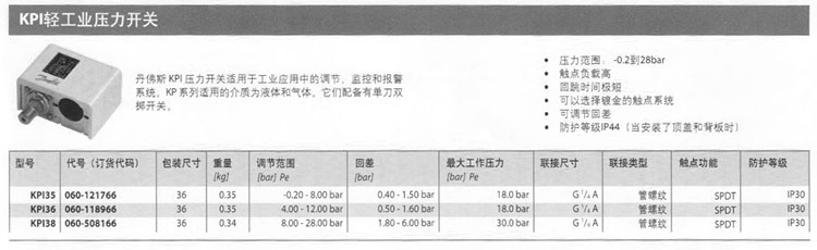 KPI35,KPI36,KPI38,輕工業(yè)壓力開關