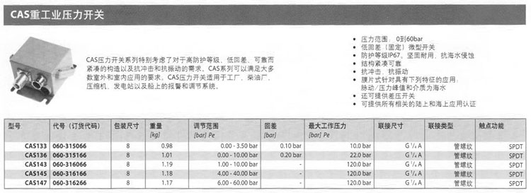 CAS133,CAS136,CAS143,CAS145,CAS147,重工業(yè)壓力開(kāi)關(guān)
