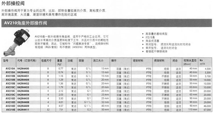 詳細(xì)信息 AV210A,AV210B,AV210C,AV210D,AV210E,角座外部操作閥