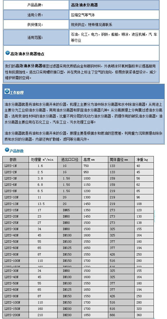 詳細(xì)信息 LDYS-1N,LDYS-2N,LDYS-3N,LDYS-6N,LDYS-8N,LDYS-10N,LDYS-13N,LDYS-15N,LDYS-20N,油水分離器