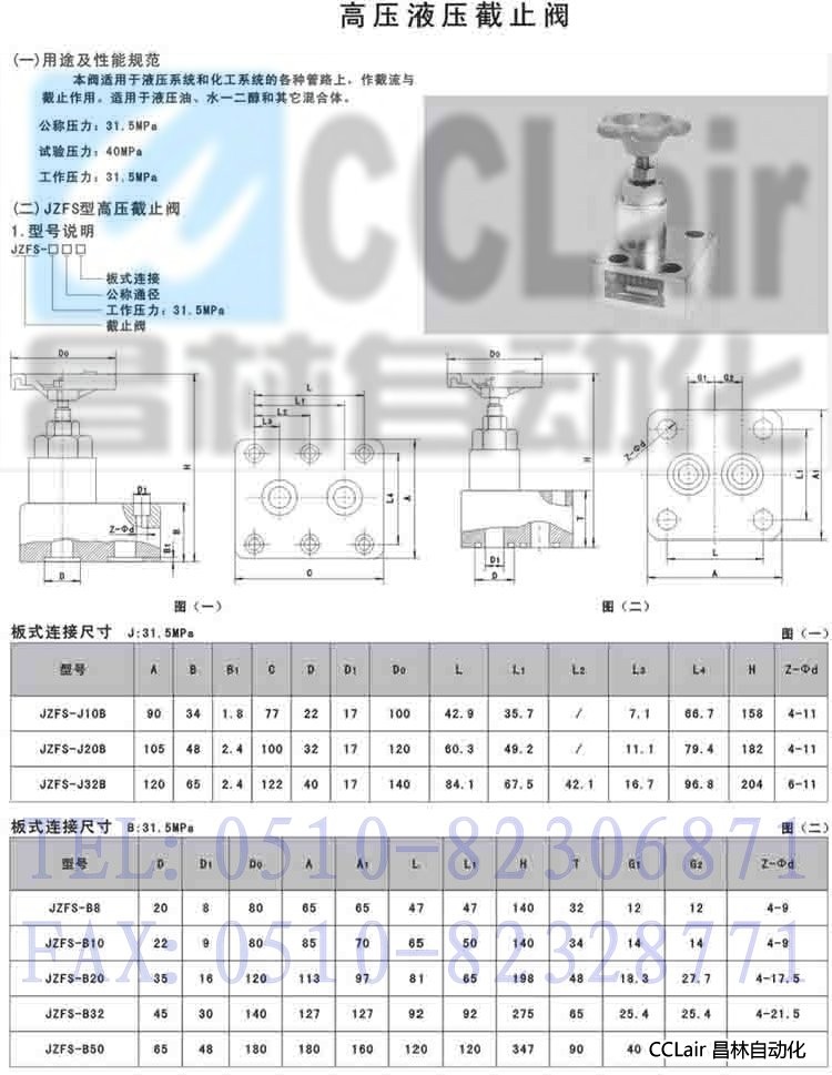 詳細(xì)信息 JZFS-J10B,JZFS-J20B,JZFS-J32B,JZFS-B8,高壓液壓截止閥