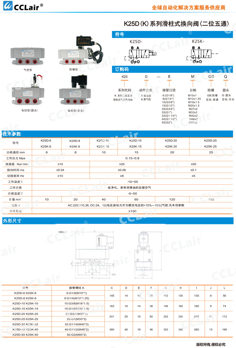K25D,K25K2,K25D-25,K25D-6,K25D-10,K25D-15,K25K-15,K25K-20,二位五通滑柱式換向閥