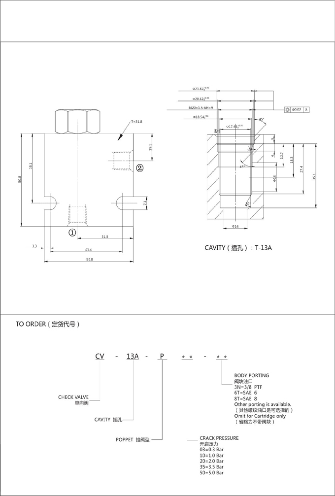 詳細信息 CV-13A-P-03,CV-13A-P-10,CV-13A-P-20,CV-13A-P-35,CV-13A-P-50,單向閥