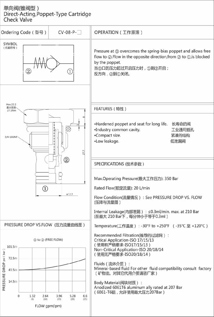 您當(dāng)前的位置:首頁 » 產(chǎn)品&解決方案 » CV-08-P-07,CV-08-P-21,CV-08-P-30,CV-08-P-41,單向閥