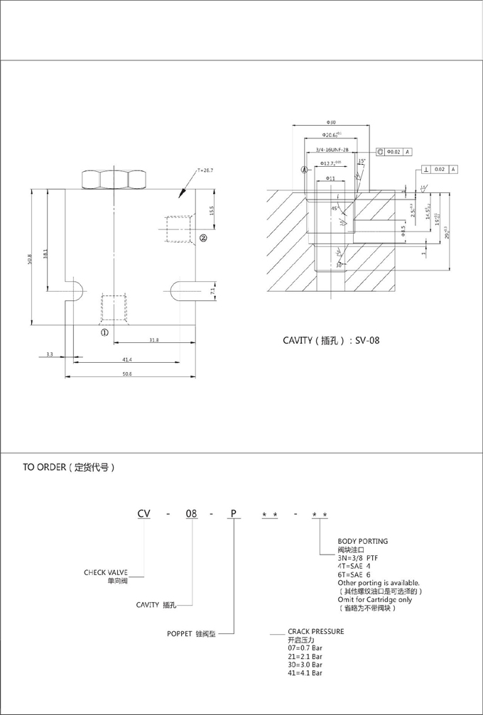 詳細(xì)信息 CV-08-P-07,CV-08-P-21,CV-08-P-30,CV-08-P-41,單向閥