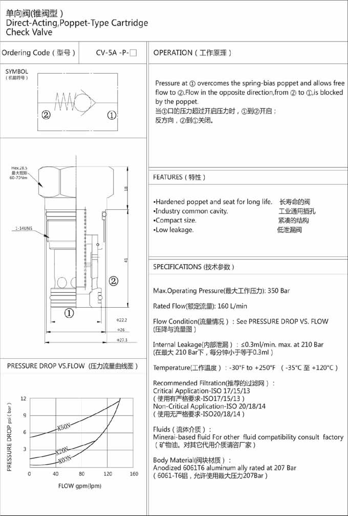 詳細(xì)信息 CV-5A-P-03,CV-5A-P-10,CV-5A-P-20,CV-5A-P-35,CV-5A-P-50,單向閥
