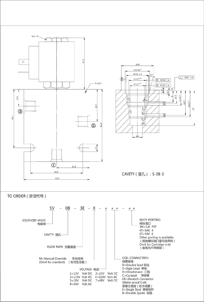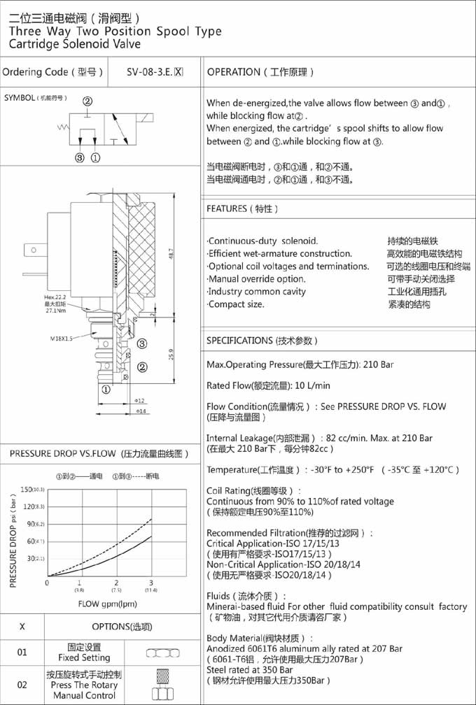 產(chǎn)品: 瀏覽次數(shù):392SV-08-3E,二位三通電磁閥