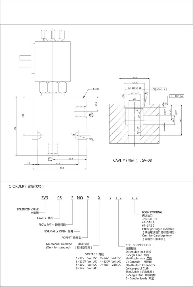 型號(hào): SV3-08-2NOP,二位二通電磁閥