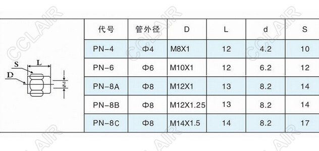 詳細(xì)信息 PN-4,PN-6,PN-8A,PN-8B,PN-8C,螺線接頭