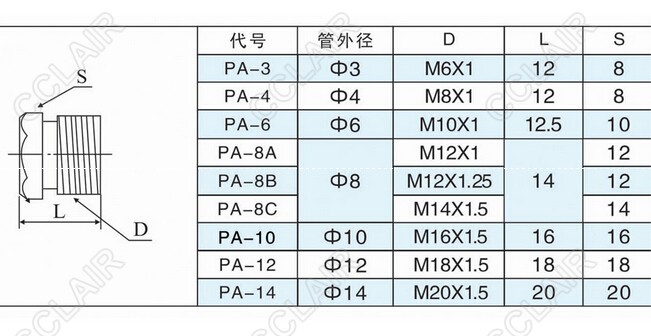 詳細(xì)信息 PA-3,PA-4,PA-6,PA-8A,PA-8B,PA-8C,PA-10,PA-12,PA-14,油管接頭01