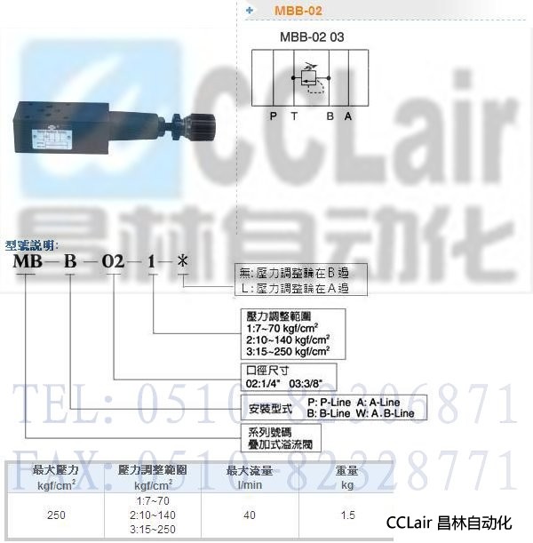 詳細信息 MBB-02-1,MBB-02-2,MBB-02-3,疊加式溢流閥