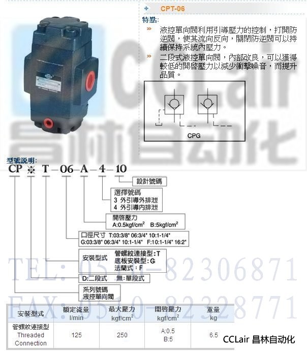 詳細(xì)信息 CPT-06-A-4-10,CPT-06-A-3-10,液控單向閥