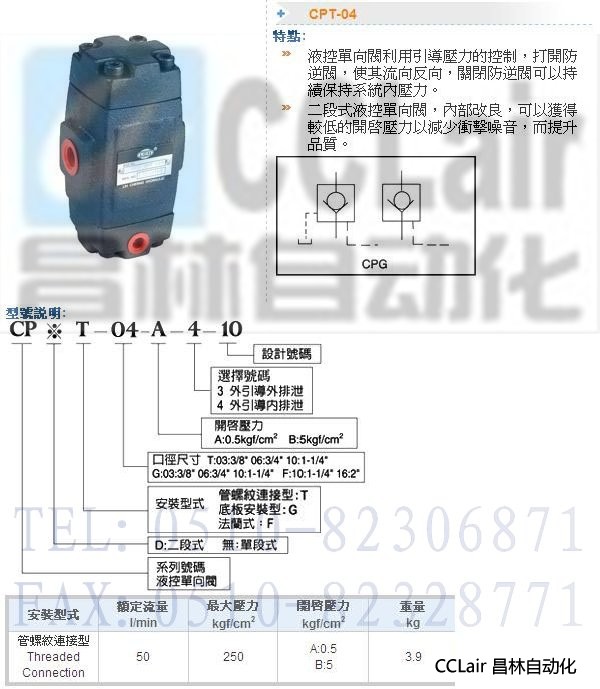 詳細(xì)信息 CPT-04-A-4-10,CPT-04-A-3-10,液控單向閥