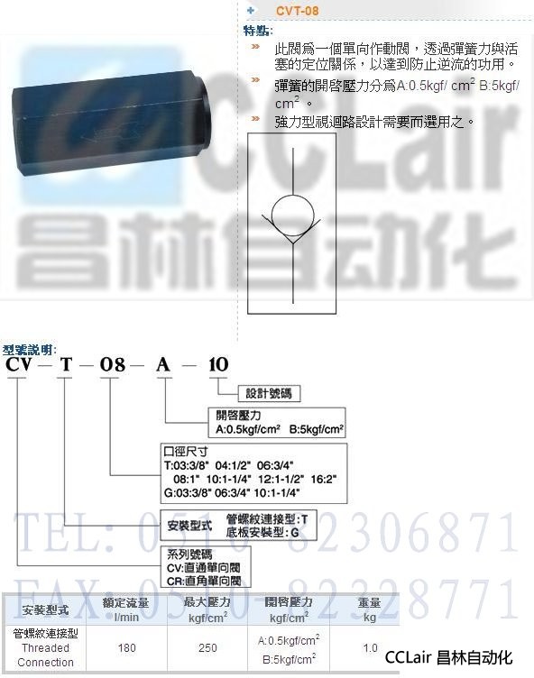 CVT-08-A-10,CVT-08-B-10,單向閥