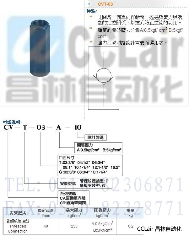 詳細(xì)信息 CVT-03-A-10,CVT-03-B-10,單向閥