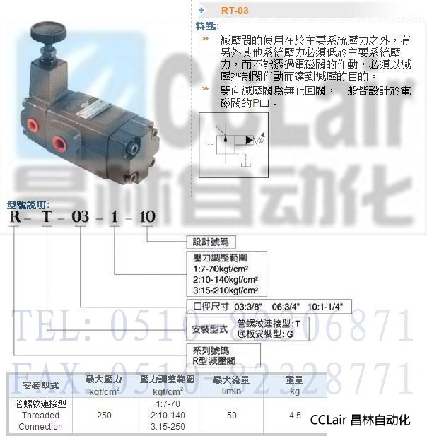 RT-03-1-10,RT-03-2-10,RT-03-3-10,RT-06-1-10,RT-06-2-10,RT-06-3-10,RT-10雙向減壓閥