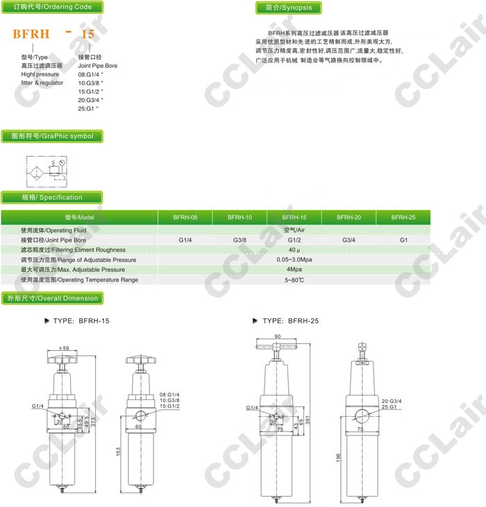 BFRH-08,BFRH-10,BFRH-15,BFRH-20,BFRH-25,過濾調壓器