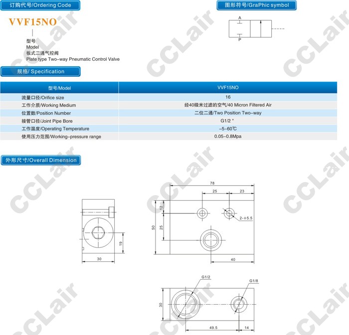 VVF15NO,板式二通氣控閥