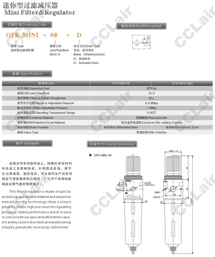 OFR-MINI-08,OFR-MINI-08D,迷你型過濾減壓閥