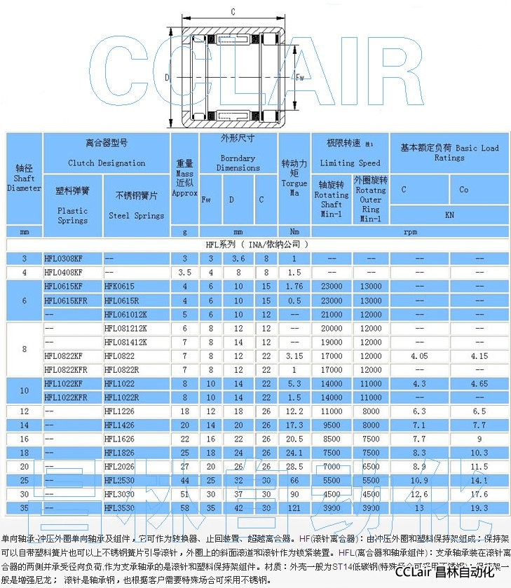 HFL0308KF,HFL0408KF,HFL0615KF,HFL0615KFR,HFL0615,HFL0615R,HFL061012K,單向軸承