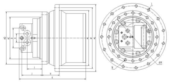 本產(chǎn)品為馬達(dá)與減速機(jī)一體的行走裝置。由集成于減速機(jī)內(nèi)部的雙排量軸向柱塞馬達(dá)、行走減速器組成。馬達(dá)內(nèi)置安全閥、防反轉(zhuǎn)閥、停車制動(dòng)裝置及高低二檔轉(zhuǎn)換裝置,它的特點(diǎn)是:傳動(dòng)比范圍大、結(jié)構(gòu)緊湊、工作效率高、可靠性強(qiáng)、體積小、運(yùn)動(dòng)平穩(wěn)、噪音低等,同時(shí)具有多級(jí)安全保護(hù)、使用壽命長等優(yōu)點(diǎn)。適用于液壓履帶驅(qū)動(dòng)行走裝置