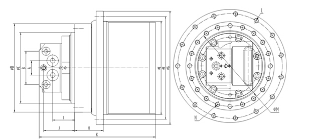 本產(chǎn)品為馬達與減速機一體的行走裝置。由集成于減速機內(nèi)部的雙排量軸向柱塞馬達、行走減速器組成。馬達內(nèi)置安全閥、防反轉(zhuǎn)閥、停車制動裝置及高低二檔轉(zhuǎn)換裝置,它的特點是:傳動比范圍大、結(jié)構(gòu)緊湊、工作效率高、可靠性強、體積小、運動平穩(wěn)、噪音低等,同時具有多級安全保護、使用壽命長等優(yōu)點。適用于液壓履帶驅(qū)動行走裝置。