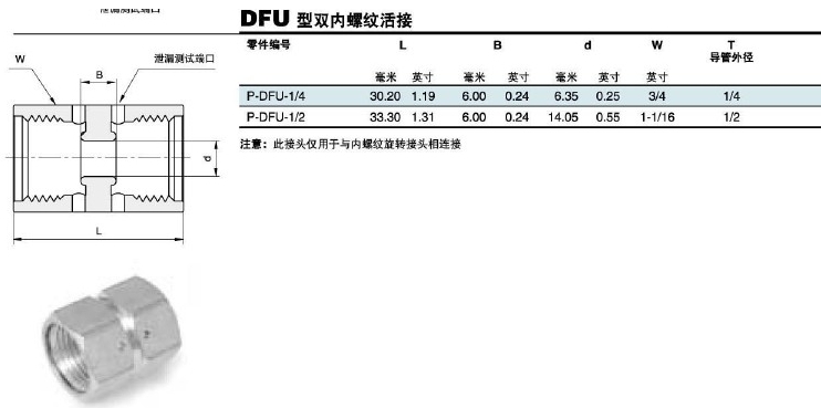 您當(dāng)前的位置:首頁(yè) » 產(chǎn)品&解決方案 » P-DFU-1/4,P-DFU-1/2,雙內(nèi)螺紋活接頭