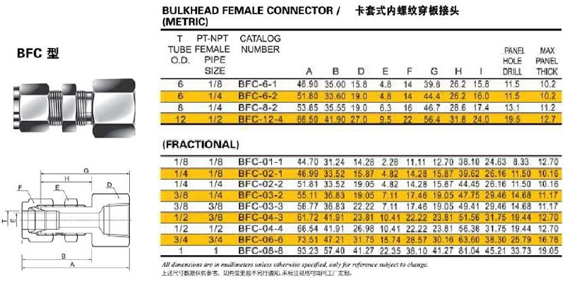 詳細(xì)信息 BFC-6-1,BFC-6-2,BFC-8-2,BFC-12-4,BFC-01-1,BFC-02-1,BFC-02-2,卡套式內(nèi)螺紋穿板接頭