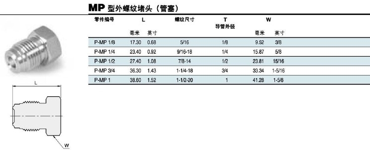 詳細信息 P-MP1/8,P-MP1/4,P-MP1/2,P-MP3/4,P-MP1,外螺紋堵頭
