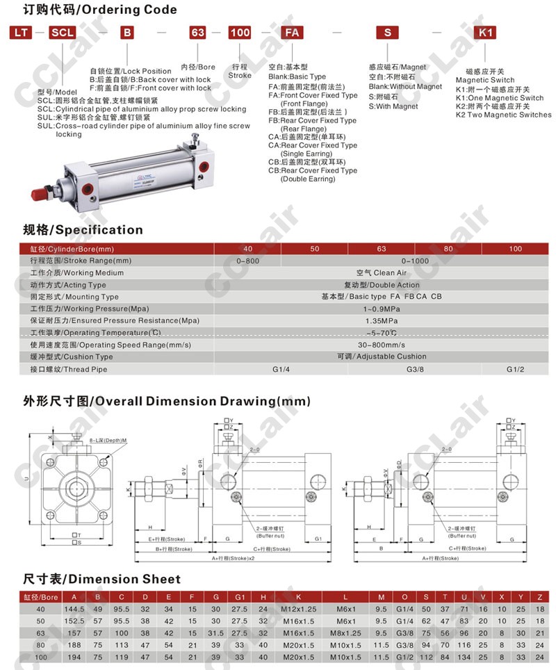 LTSULF-40-100,LTSULF-50-100,LTSULF-63-100,LTSULF-80-100,LTSULF-100-100,自鎖型氣缸