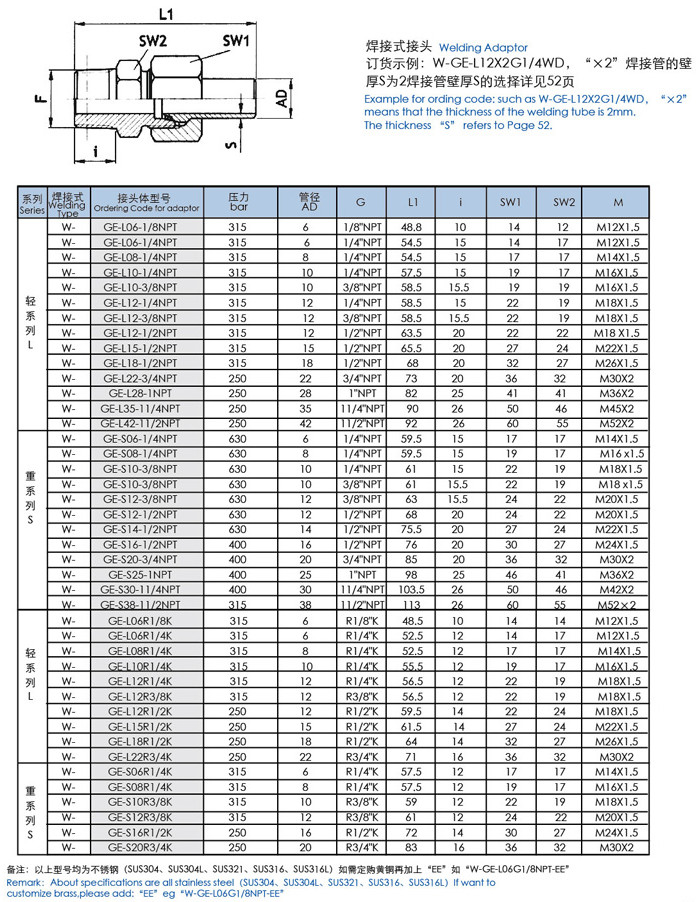 W-GE-L22-3/4NPT,W-GE-L28-1NPT,W-GE-L35-11/4NPT,W-GE-L42-11/2NPT,W-GE-S06-1/4NPT,