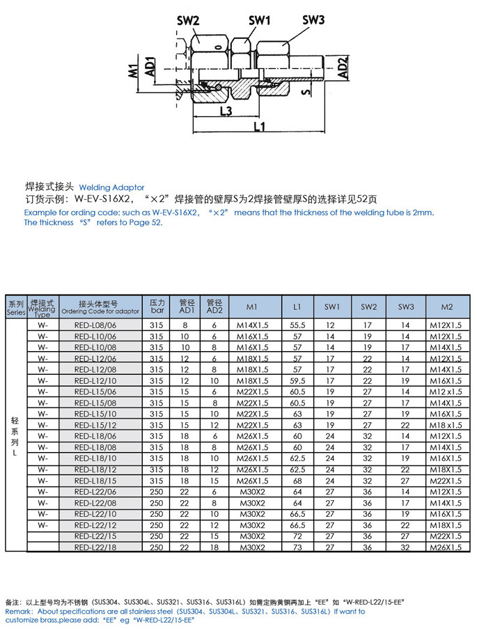 詳細(xì)信息 W-RED-L08/06,W-RED-L10,W-RED-L12,W-RED-L18,W-RED-L22,W-RED-L15,直通焊接式接頭
