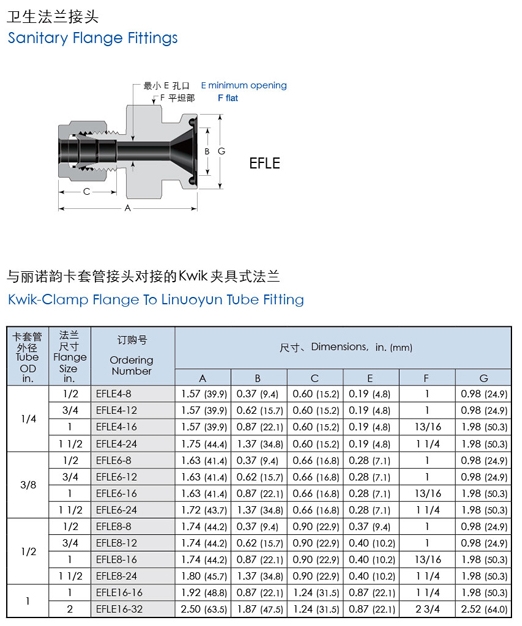 EFLE4-8,EFLE4-12,EFLE6-24,EFLE8-8,EFLE8-12,EFLE16-16,EFLE16-32,衛(wèi)生法蘭接頭