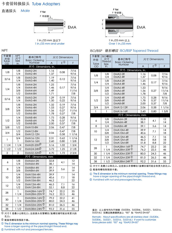 EMA2,EMA3,EMA4,EMA5,EMA6,EMA8,EMA10,EMA12,EMA16,EMA20,EMA24,EMA32,直通外絲卡套接頭