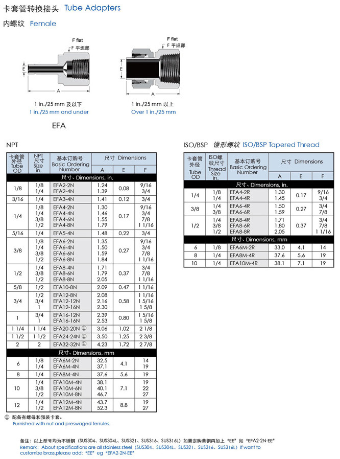 EFA2-2N,EFA3,EFA4,EFA6,EFA8,EFA10,EFA12,EFA16,EFA20,EFA24,EFA32,直通內(nèi)絲卡套接頭