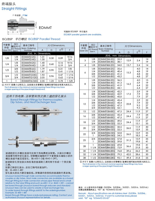 EOMMT2,EOMMT4,EOMMT8,EOMMT12,EOMMT16M,EOMMT20M,EOMMT30M,直通終端卡套接頭