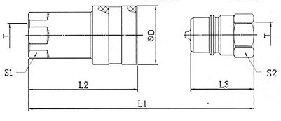 | 昌林液壓 | 國際標(biāo)準(zhǔn) | L1 | L2 | L3 | ØD | S1 | S2 | T | 最大工作壓力 | 母接頭編號 | 公接頭編號 |